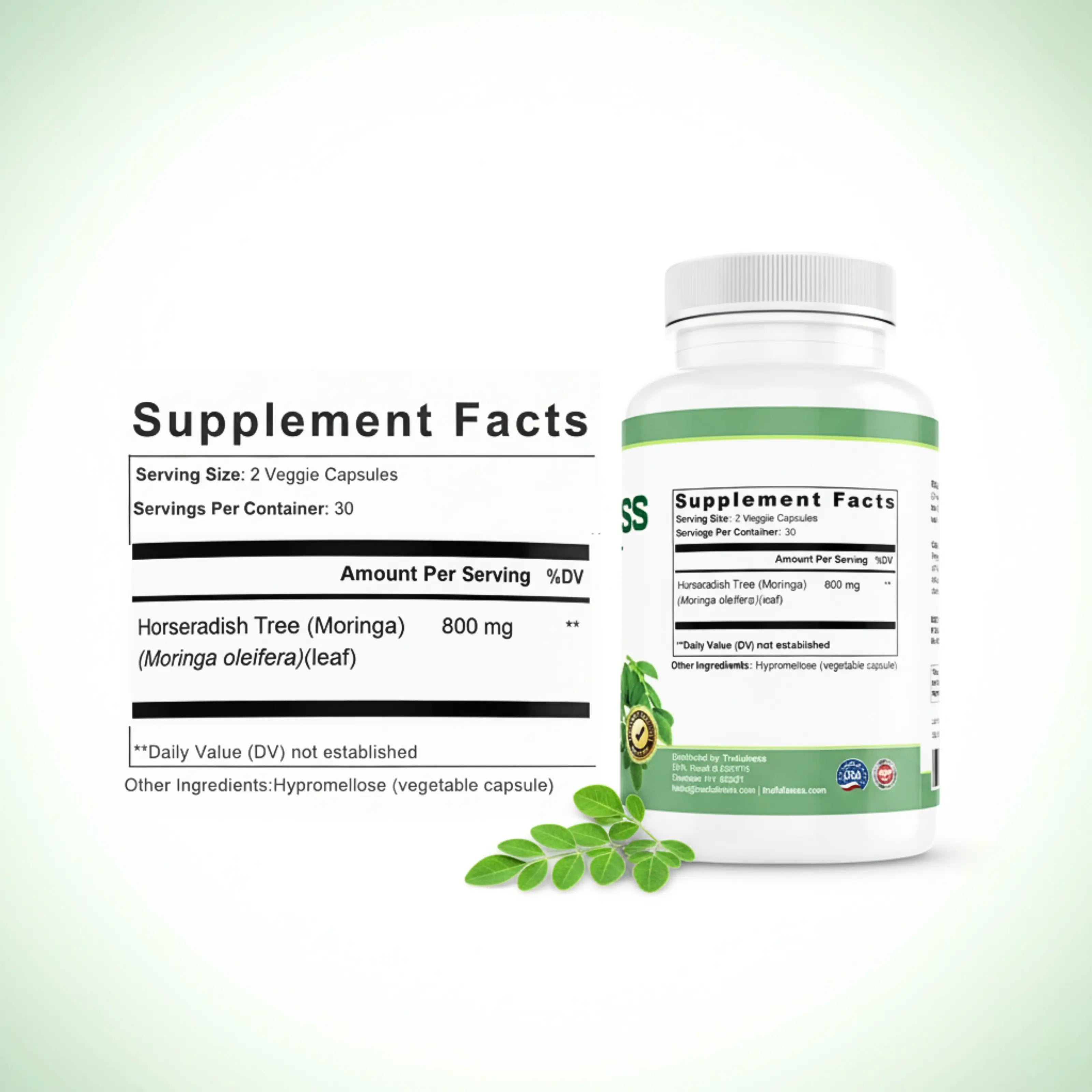 Capsules are more convenient and ensure consistent dosage without the bitter taste of powder. Trufulness Pure Moringa Capsules are designed for maximum absorption and daily ease.