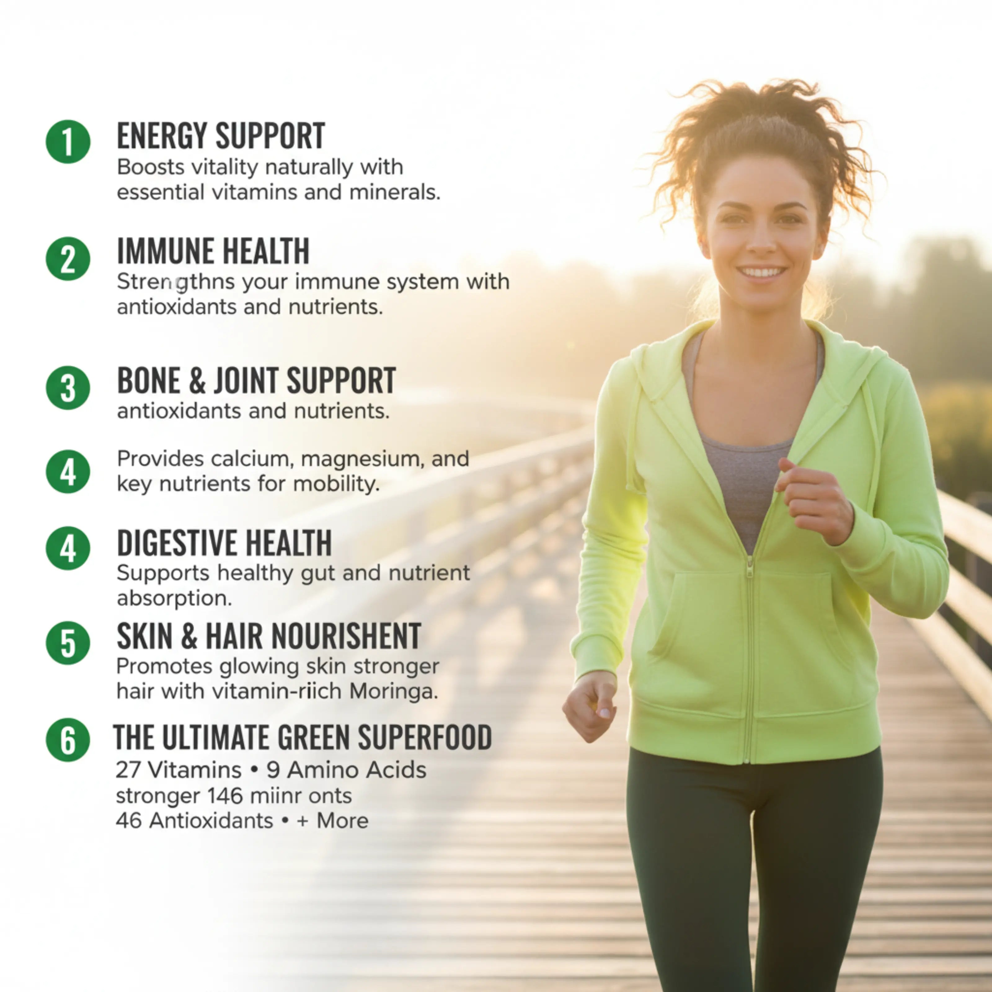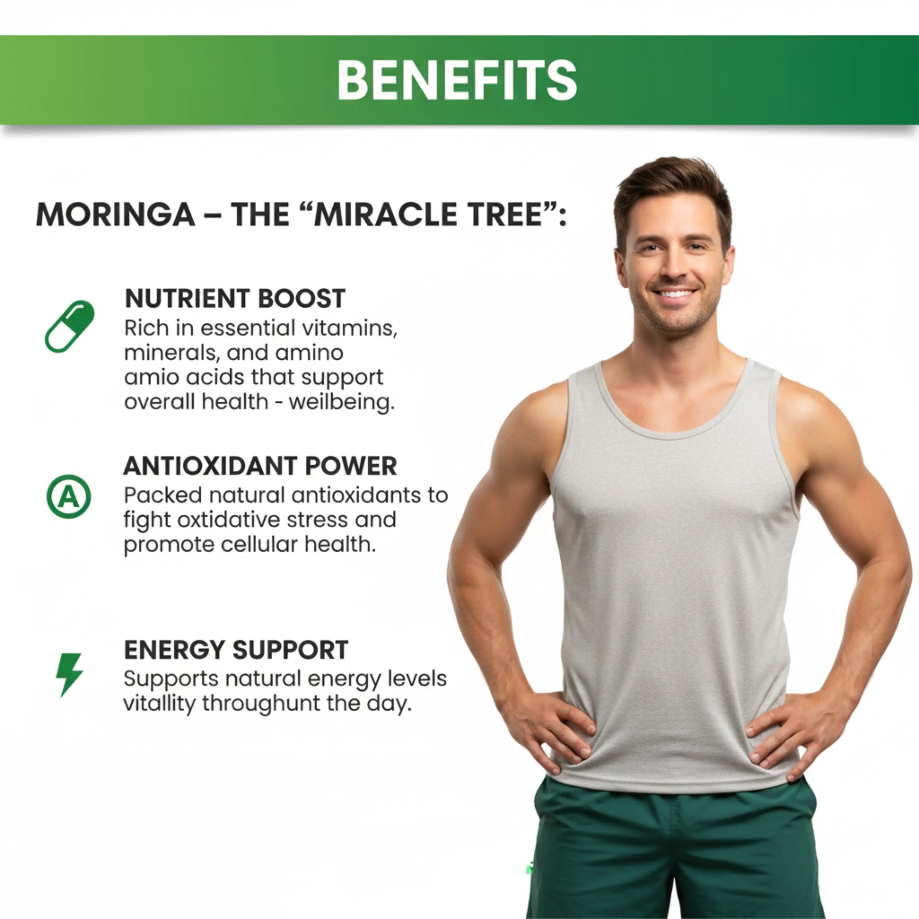 Every capsule is packed with 100% pure Moringa leaf extract — nothing more, nothing less. No fillers, no additives, just nature’s powerhouse in its most concentrated form.