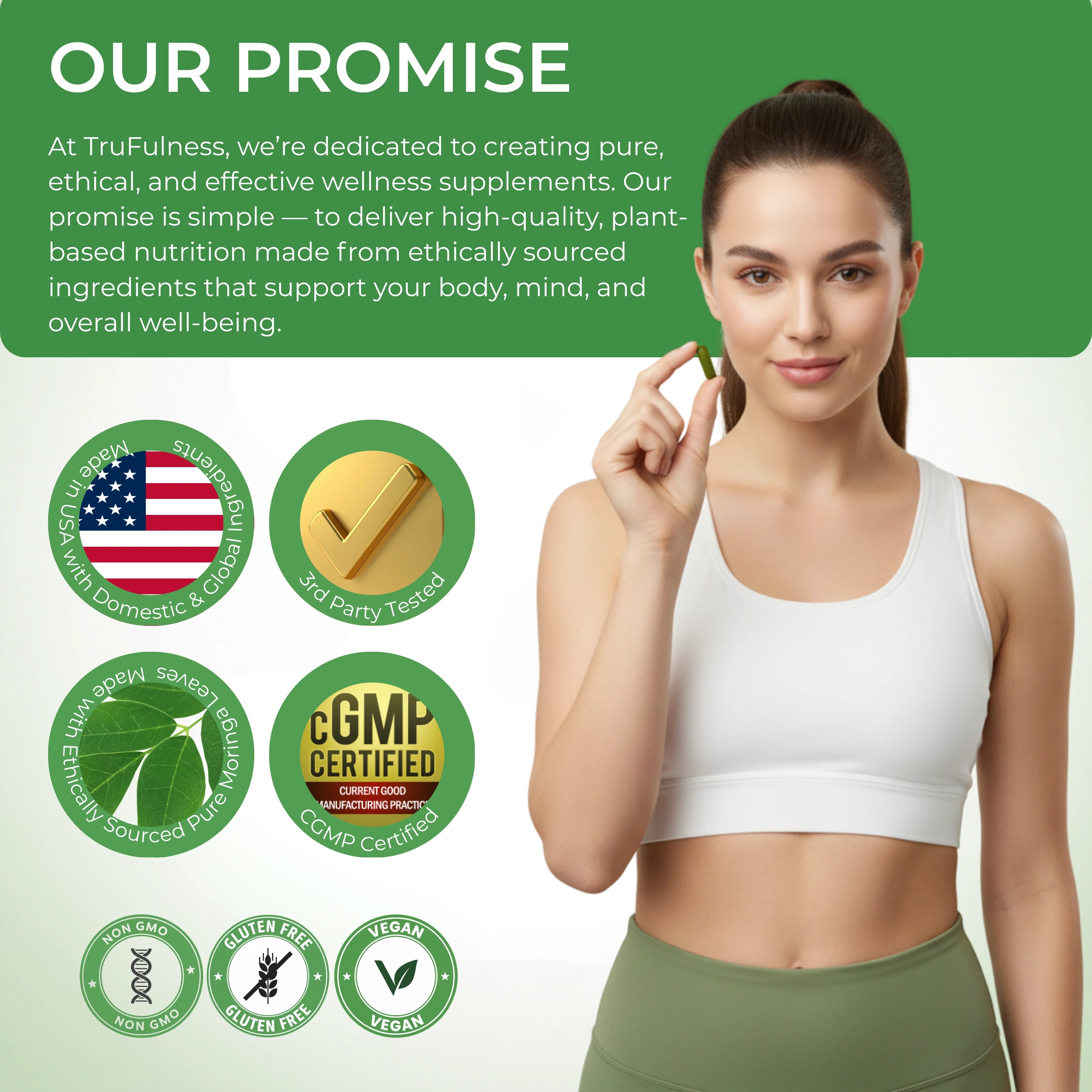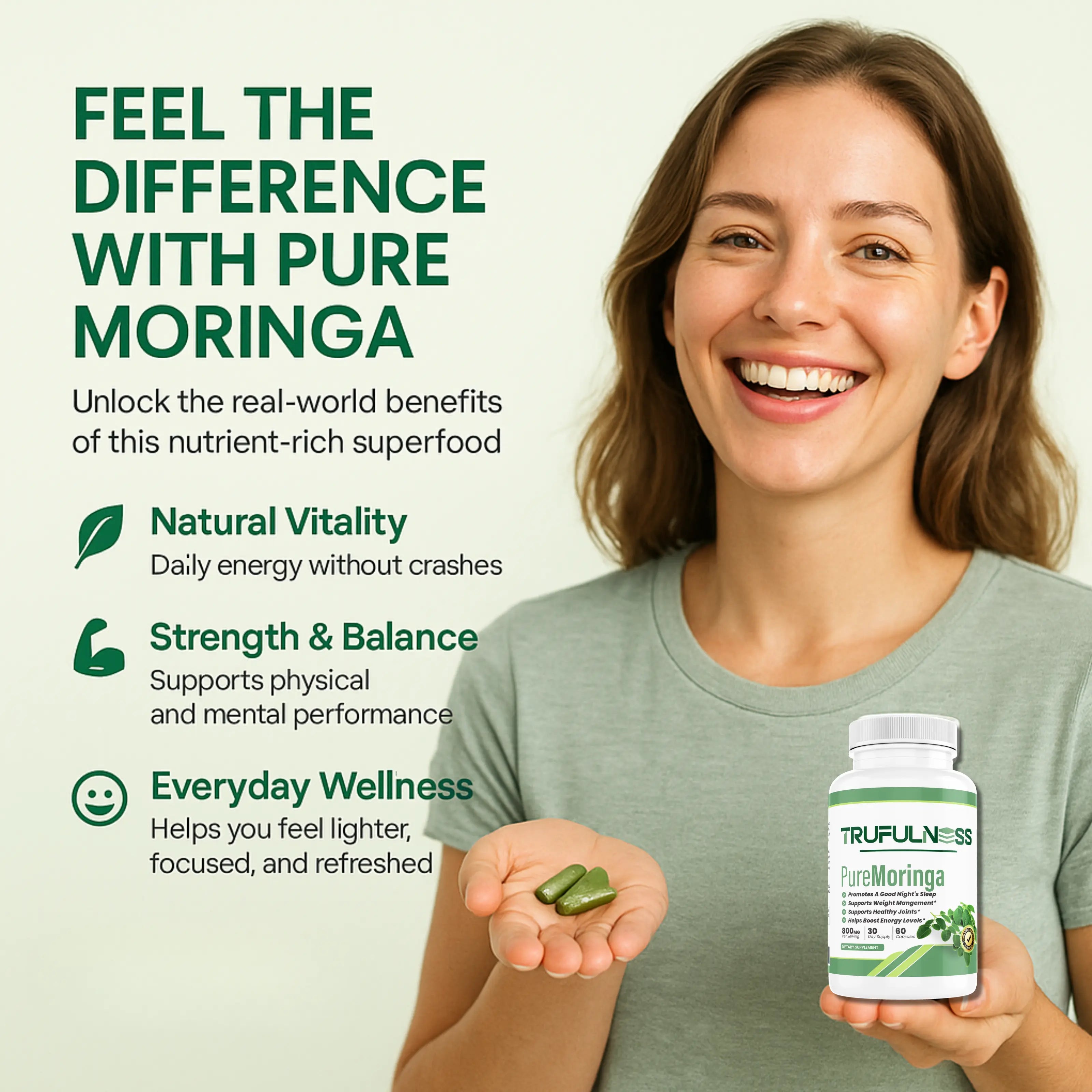 Unlike generic brands, Trufulness offers organic moringa powder capsules that are lab-tested for purity, potency, and safety. No fillers, no shortcuts — just results.
